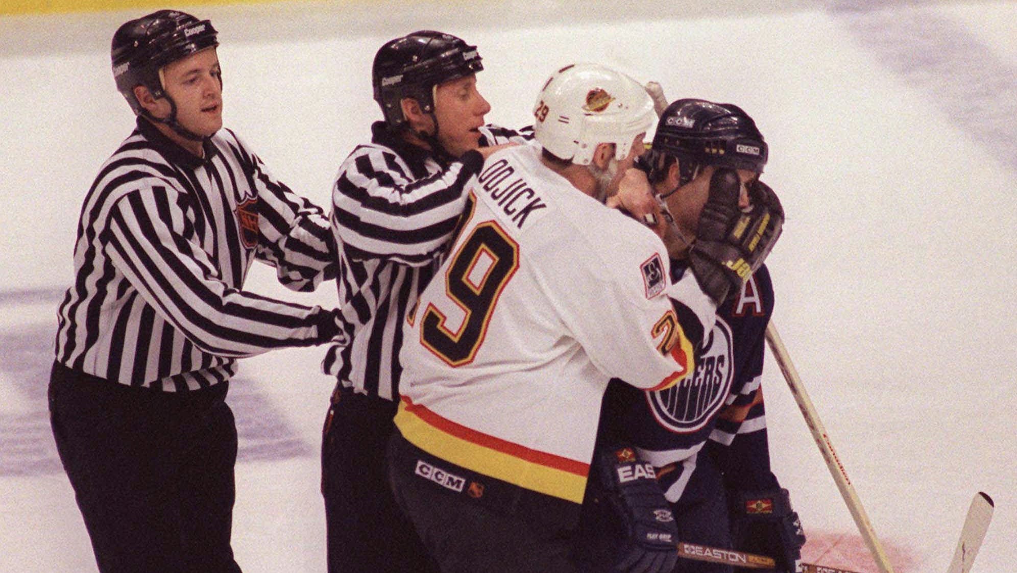 The Puck Report Today In Nhl History Gino Odjick Runs Hasek